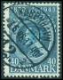 1945. 40 øre blå. Nederste del af mærket med dobbeltpræg.