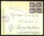 1942. Christian X, 10 Øre, violet (4-blok). Brev sendt fra KØBENHAVN 4.9.45 til Garphyttan i Sverige. Brevet af blevet stoppet af Udlandskontrollen. På bagsiden stemplet "Retur i Henhold til indlagt M...