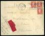 1946. 20 øre rød i par på brev til England med ramme stp. Paquebot.