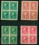 USA. 1 og 2 c. i 4 forskellige utakkede 4-blokke.
