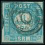 SCHLESWIG-HOLSTEIN. 4 sch. blå. Sjældent stumt 4-rings stp. uden punkt: Rendsburg JB.
