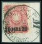TYRKIET. 1884. 20 para rosa på klip. Sign. Kosack. AFA 750,-