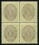1896. 5 c. gulgrøn/gulliggrå i 4-blok. AFA (løse) 2600,-