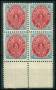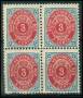 1896. 3 c. blå/rød i 4-blok.
