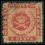 1873-74. 14 c. tofarvet defekt. AFA 13000,-