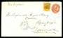 1896. Tofarvet, 3 Cents, 9. tryk, indigo/karminrosa. Opfrankeret på 2 Cents helsagskonvolut. Sendt fra ST.THOMAS 18.11.1901 til Langensalza, Tyskland. Brevet er sendt fra sømand ombord på det tyske fl...