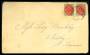1873. Tofarvet, 3 Cents, blå/karminrosa (par). Brev af 2. vægtklasse sendt fra CHRISTIANSTED 22.12.1896 til St. Thomas.