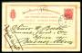 HELSAG. 1888. Brevkort, 3 Cents, rød. Sendt fra ST.THOMAS 7.3.1888 til Buenos Aires, ARGENTINA. Ankomststemplet 21.3.1888.