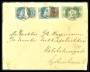 1902. Provisorium, 8 CENTS/10 Cents, blå/brun og 4 Cents, gul/blå, samt Våbentype 1 Cent (par) og 5 Cents, blå. Brev sendt fra FREDERIKSTED 25.8.1902 til G.A. Hagemann i København. Brevet er 3. vægtkl...