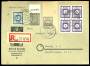 ØSTSACHSEN. 1945. Taltegning, 10 Pfennig, grå og 20 Pfennig, blå samt 6 Pfennig, violet (4-blok med postmestertakning). Rekommanderet brev sendt fra DRESDEN 5.6.46 til Leipzig. 4-blokken er signeret "...