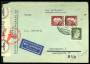 2. VERDENSKRIG. CUBA. Luftpostbrev forsøgt sendt fra Habana via Trans-Atlantic rute til Schweitz. Cubansk og amerikansk censur. Brevet er returneret med stempel "RETURN TO SENDER / NO SERVICE AVAILABL...