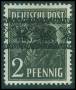 ENGELSK/AMERIKANSK ZONE. 1948. Valutareform, 2 Pfennig, sort, overtryk posthorn. OVERTRYK PÅ BEGGE SIDER. Michel: 36 I DD I: 90 €