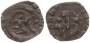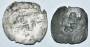 2x penninge fra borgerkrigsperioden fra Erik Menved, den ene bred og sølvholdig, den anden høj i kobber.