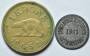 Grønland. 10-Øre 1911, Grønlands Minedrift. Fornikling delvis slidt, Si 5.1. Samt 1-Krone 1926 (blanketfejl). Si 5.1, 4.2.