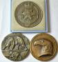 3 stk. Anders Nyborg-medaljer, bronze 70mm. Sirius Patruljen 1950-1975, nr 1512, 237g. Kalaallit Nunaat nr. 4630, 266g. Internationale Dyrebeskyttelse, næsehorn/ørn, nr 827, 264g. John-P nr. 90, 7, 92...