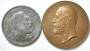 Sverige, Oscar II. Industriudstillingen Stockholm 1897, bronze 101g/60mm, (1+). Industriudstilling og Sløjd, Malmø 1881. Bly/zink?, 66g/50mm, (1(?).