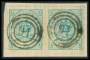 1871. 3 sk. grå/lilla i par på klip med LUX stp. Kiøbenhavn 6.8. Attest Osper.