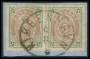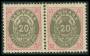 1875. 20 øre rød/grå tryk 3b pos. A97-98 i par med ret og omv. rm. Attest LN. Pragt.