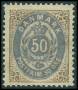 1875. 50 øre brun/blåviolet tryk 1b. Attest Kaiser.