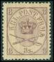 1871. 3 sk. grå/lilla tryk 4 pos. A77: Omv. rm. knækket hjørnetak foroven til venstre. Attest LN. AFA 20.000,-