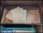 Kasse med diverse materiale i æsker og tidligere auktionslot m.m.