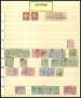 Æske med cirke 70 indstiksark fyldt med diverse mærker.