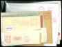 Kasse med frankerede kuverter fra diverse auktionshuse, samt udvalgshæfter med diverse mærker, mest dansk materiale.