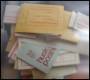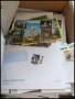 Kasse med 3 bøger, løsmærker mange forskellige inkl. nyheder mv.