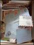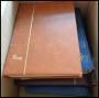 Flyttekasse med en del album/samlinger, tidligere auktionslot og Danmark kartotek m.m.