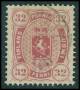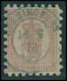 1866-67. Våbentype, 10 Penni, sort på gul, Gennemstik II. Uden gummi.