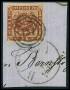 1863. 2 sk. blå, 4 sk. brun og 16 sk. gråviolet på brev fra Kjøbenhavn til Berlin med ramme stp. Aus Dänemark, adressaten er overstreget. Attest LN.