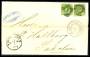 1865. 8 sk. grøn x 2 på brev fra Kjøbenhavn til Laholm, Sverige. Attest LN.
