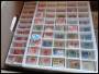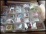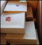 2 flyttekasse med sorteringsbakker klar gjort for bundter, samt diverse mærker i pergamynposer og set nogle bundter.