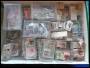 Storkasse med 2 mapper FDC, 2 brugte bøger med indlæg og bøtte med løsmærker m.m.