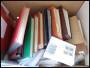 Kasse med bla. en del hæfter, årsmapper m.v.