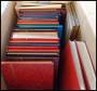 Flyttekasse med 20 bøger med diverse lande, samt 5 bøger med engelske kolonier alm. mærker.