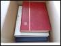 Kasse med mellemgode mærker i 6 tynde indstiksbøger.
