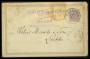 1885. 8 aur violet brevkort stp. Ship Letter (et påsat mærke er fortrudt og er fjernet igen inden brevkortet er afsendt) sendt til Leith, England, flere knæk i højre side. Attest LN.