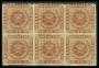 1863. 4 sk. brun tryk 38-40/48-50 i 6-blok med 2 postfriske, pos. 39+49 er understøttet. Attest Grønlund.