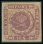 1863. 16 sk. dyb rødlig lilla. Sign. af flere.