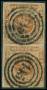 1854. 4 SKilling, brun (lodret parstykke). Annulleret med nummerstempel 145: SCHWARTAU.