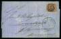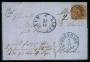 1854. 4 RBS nøddebrun pl. IV-36 og 4 RBS gulbrun pl. IV-2 på brev med nr. stp. 27 og 72, kun enkelte blandningfrankering kendes. Udstillingsobjekt. Attest CAM.