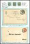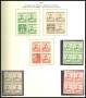 1875-1902. Samling tofarvede opstillet på sider med diverse tryk, breve, stempler og varianter mv.