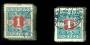 1907-15. 1 kr. blågrøn/rød med begge tk. i 2x bundter.