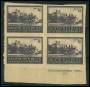1943. 4 z. mørklilla i utakket prøvetryks 4-blok som altid blandet kvalitet grundet elendigt papir kvalitet, lodret fold mellem mærker, sjældent.