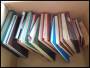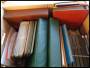 Flyttekasse fyldt med diverse materiae i bøger mv.