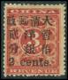 KINA. 1897. Provisorium, 2/3 Cents, rød, Revenue. Michel: 1.000 €