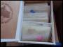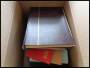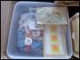 Kasse med meget forskelligt materiale i bøger og poser mv.