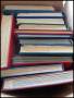 Stor kasse med indstiksbøger med meget blandet materiale, inkl. mange bedre mærker/sæt.