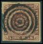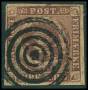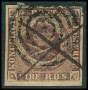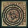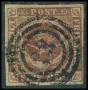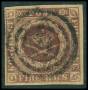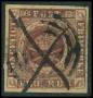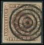 1851. 4 RBS pl. II-96 Ferslew dobbeltannulleret med blækkryds og stumt stp. Attest CAM.